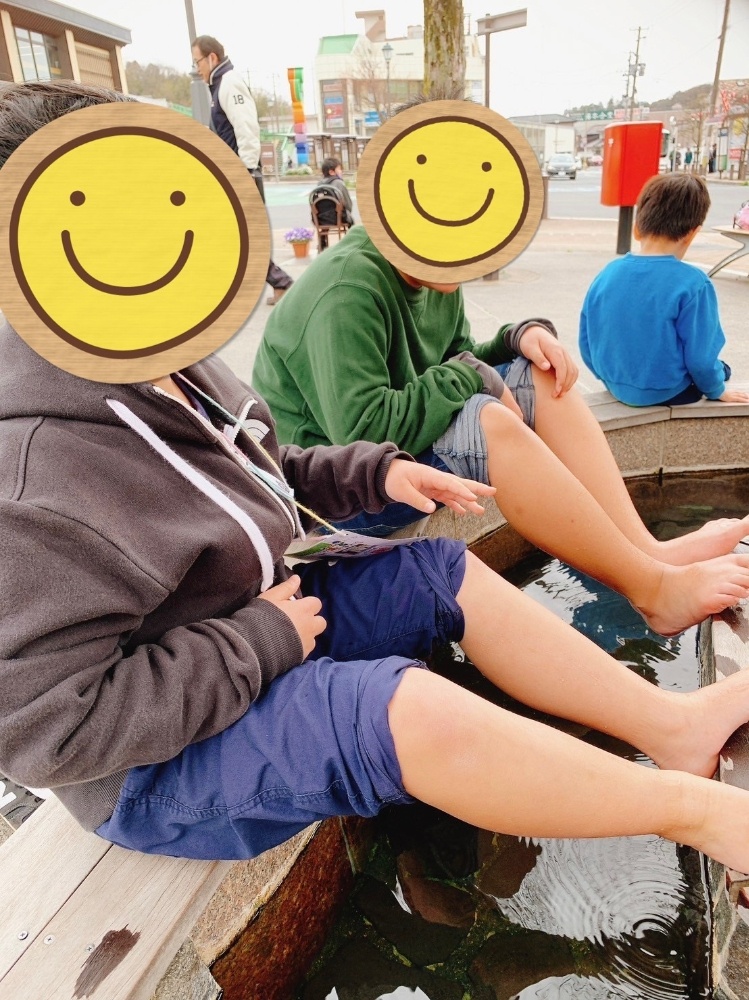 湯本名物の足湯!思いの外熱くてびっくりしました(^o^)