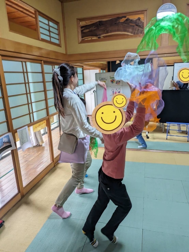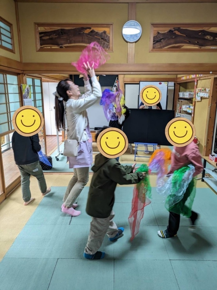 リクエスト曲に合わせて、シフォンスカーフでリトミック♪