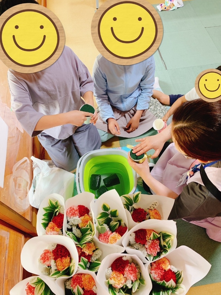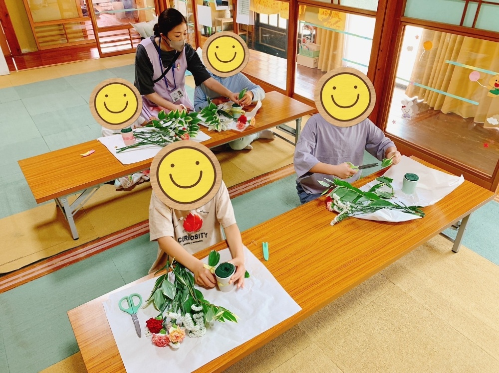 本日の土曜学習は、明日母の日なので『花育』活動をフラワーショップさかいさんにご協力いただき行いました(*^^*)