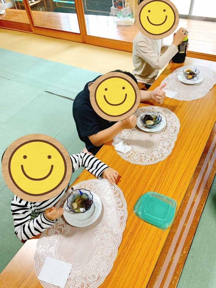 はじめて食べる子もいて、かんてんにチャレンジ♪いろいろな感想が飛び交い楽しい食育になりました。