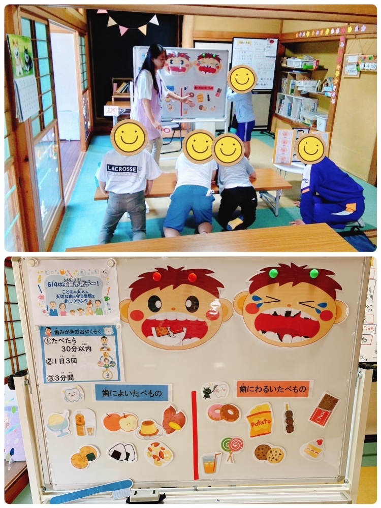 子どもも大人も大切な歯を守る習慣を身につけよう!ということで、集団活動を行いました。