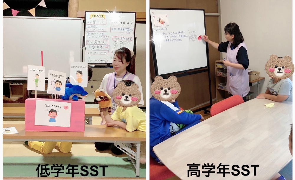 低学年高学年に分かれ、その日にあった出来事を題材に毎日SSTを行っております。
