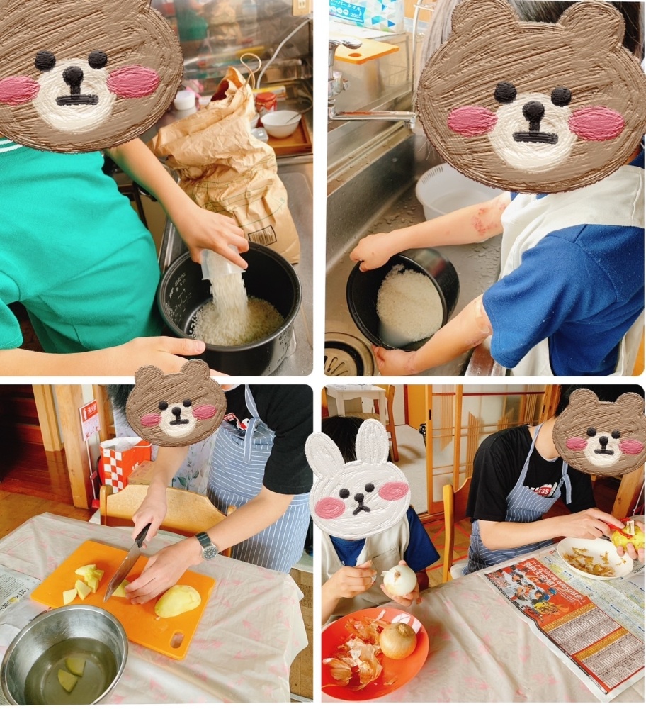 お米を計り、研いで、野菜の皮を剥き切る作業を他者意識をしながら行いました。