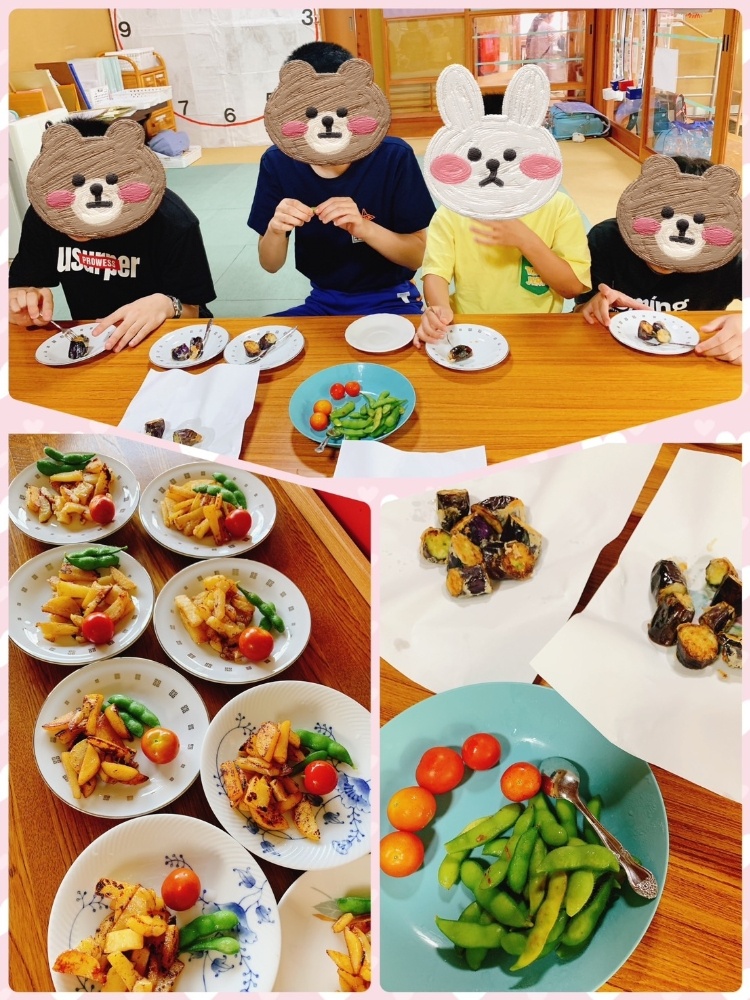 最近のコーシュリーのおやつは、採りたて新鮮なお野菜たち(*^^*)