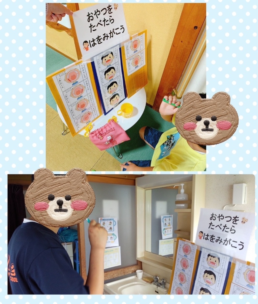 視覚支援をみながら丁寧に歯みがきを行い、口内環境を整えて次の活動にうつります(*^^*)