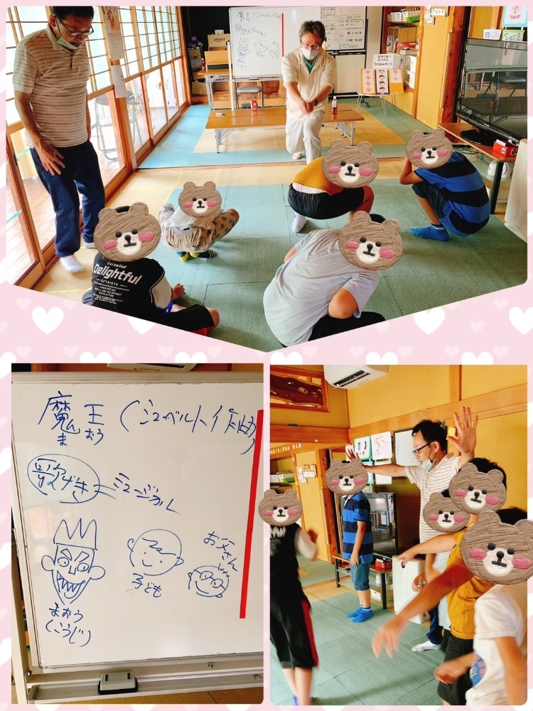 今週の集団活動は、『リトミック』を♪学校でお疲れの身体を脱力し、ピアノ曲を聴きながらリラックス。教科書にある懐かしい曲に、昔を思い出し朗らかな気持ちになりました。男性でピアノが弾けるって素敵ですね(*^^*)じゃんけん列車では、ルールを守り行い、最後は『U.S.A』に合わせてダンシング!みんなで楽しく発散しました。