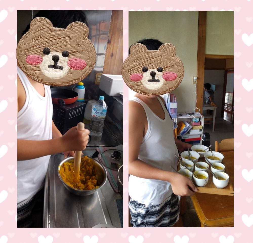 畑で採れたかぼちゃを使い、パンプキンスープづくりを♡お料理大好き中学生がみんなのために一生懸命作ってくれました。普段から畑の水やり、草むしりなど献身的に作業してくれるみんなの頑張りが実を結び立派なかぼちゃが収穫できました。