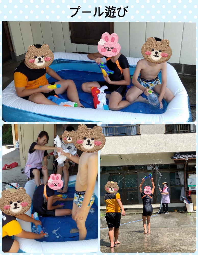 プール活動を行いました😊猛暑を吹き飛ばすくらいに気持ちいいひとときでした。物の貸し借りを上手にしながら、相手の気持ちを考えた行動をすることにより、円滑に楽しく遊べることを学んだ活動でした。