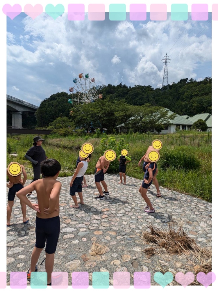 川遊びの前には、準備運動もしっかり行いました😊