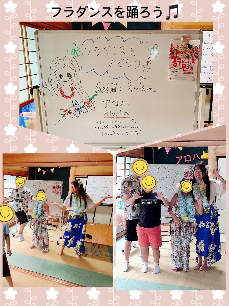 「月の夜は」に合わせ、しなやかに動く🎵なんとも爽やかな曲、まるでハワイに来たみたい🌺素敵な時間をみんなで共有いたしました。何かに夢中になるっていくつになっても大切ですね🤗子どもたちから学ばさせていただきました。