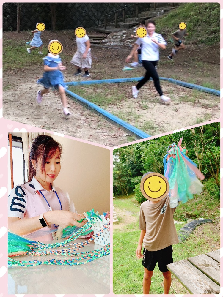 「しっぽ取り」を行いました。しっぽの長さの均一性、またズボンに挟めなくてもいいように、すずらんテープを編んで洗濯バサミをつけしっぽを作ってみました。こうした配慮もルールを守るために必要不可欠。