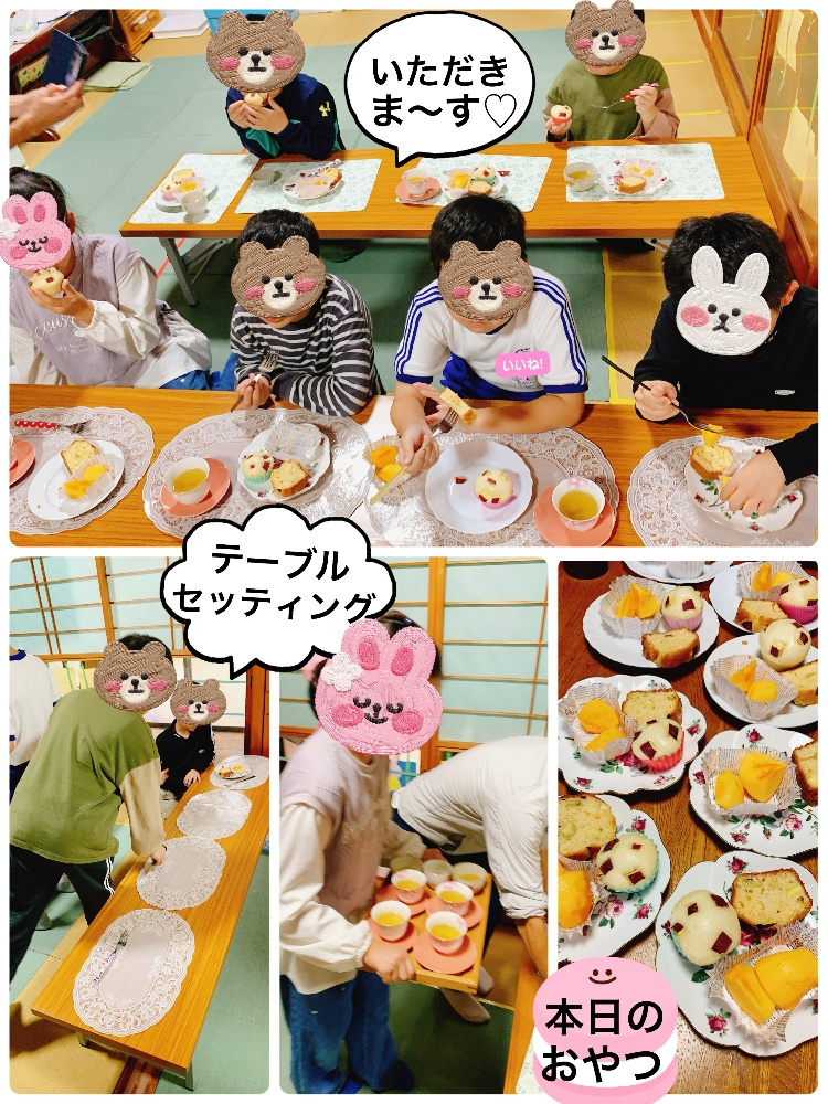みんなでテーブルセッティングをし、おやつを運び配膳する♡また先生の分の緑茶も6年生の男女が入れてくれ、優しい心遣いに感激いたしました。それぞれが自分でできることを率先して行い、健康・生活の基本的生活スキルがアップしております。