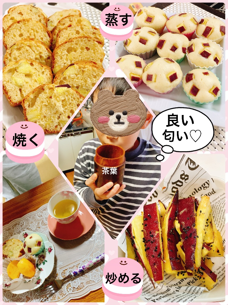 さつまいもを使ったお菓子には、昔ながらの自然な甘みの蒸しパンと今風のパウンドケーキとバターときび砂糖で炒めたスティックポテトを♡調理法が違うと味わい・食感も違います。その違いを楽しんでいただければと思います。また甘いおやつには、やっぱりお茶が1番☝️緑茶にはカテキンが含まれており、殺菌効果によりインフルエンザ・感染症や風邪予防、テアニンが精神を落ちつかせてくれるリラックス効果もあります。茶葉の匂いをかぎ、「良い匂い♡」と堪能する子もいました。旬の物を食べて、流行り病に負けない体づくりを心がけたいですね🤗