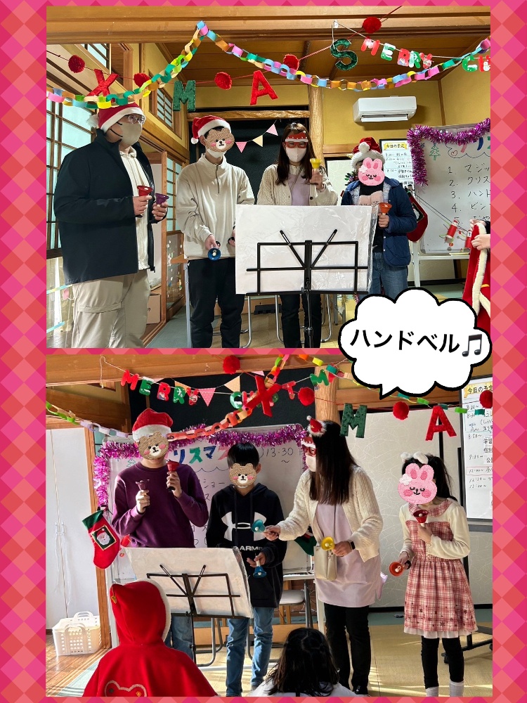 グループになり、ハンドベルを練習し「ジングルベル🎵」を披露!