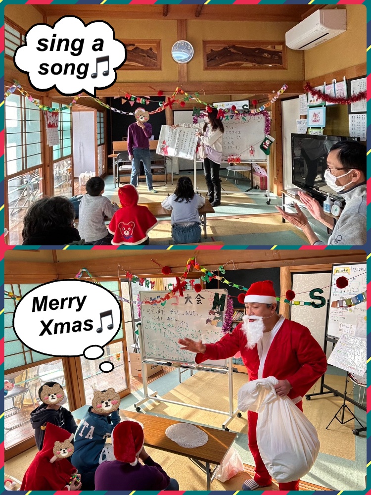 お友達の指揮に合わせて、「あわてんぼうのサンタクロース」の歌を熱唱🎵