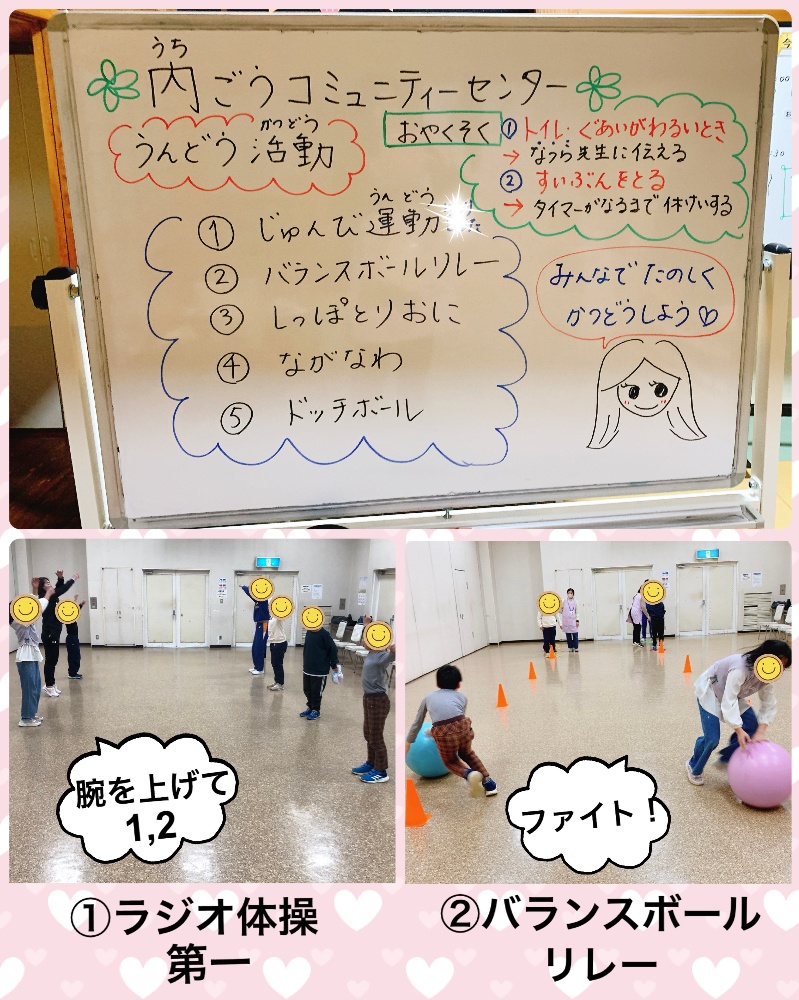 役割分担を決め、準備や後片付けもみんなで行いました😊また、全種目達成し自己肯定感が上がり自信にも繋がりました。