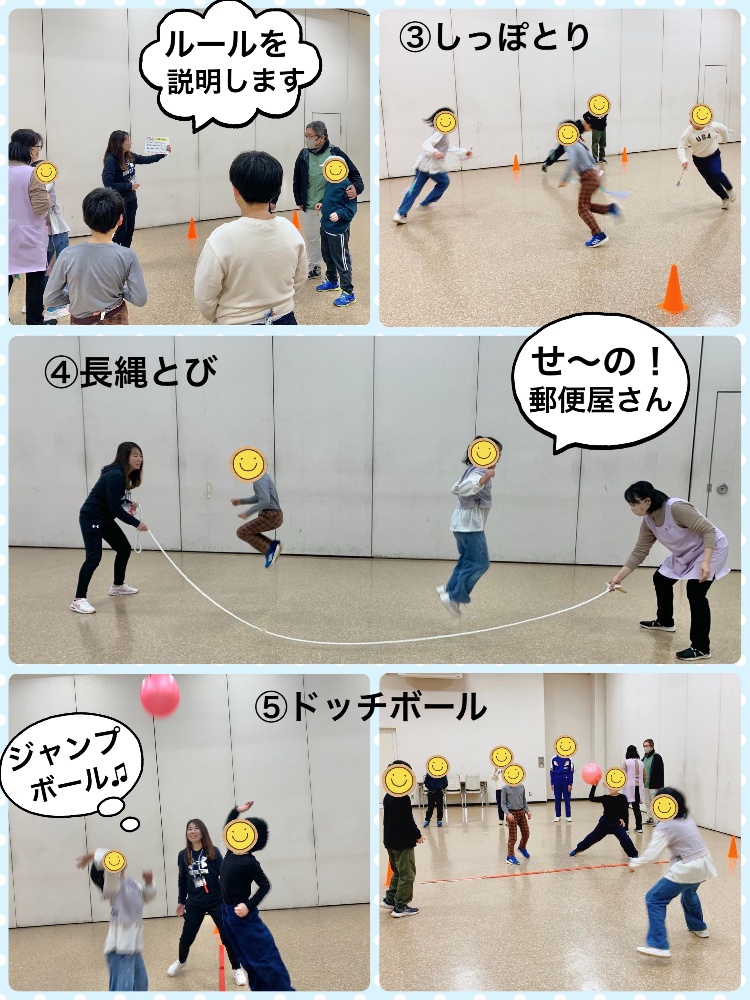 お友達と協力しコミュニケーションをとりながら、身体を多様に動かし運動能力を高めました😊