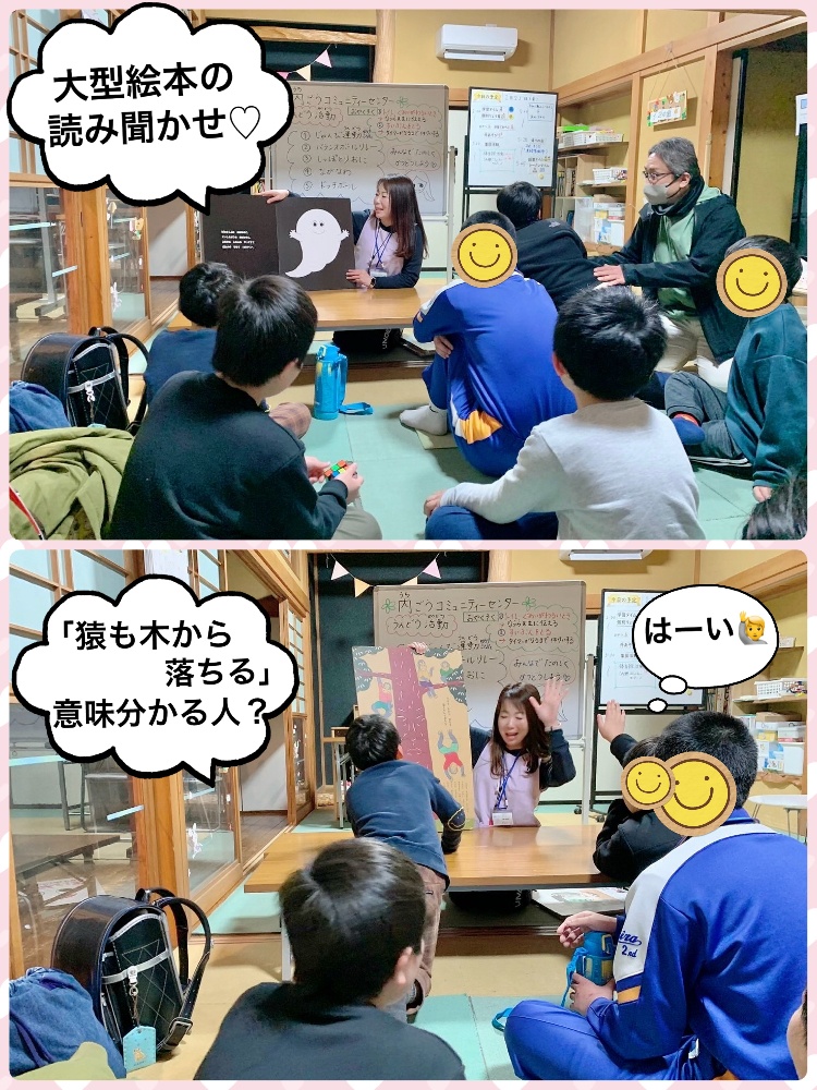 コーシュリーに戻ってからは、活動の振り返りと静の時間の「読み聞かせ」♫