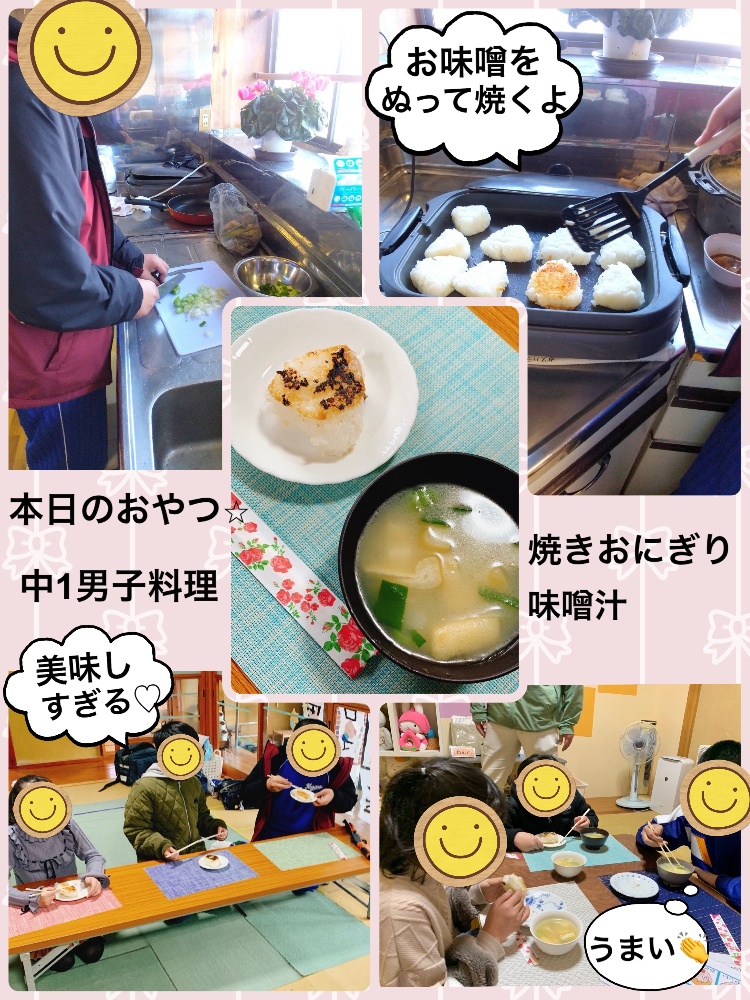 この日のおやつは、「焼きおにぎり&味噌汁」中学生のお友達が作ってみんなに振る舞ってくれました😊