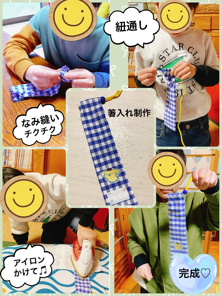 自分で作った箸入れにお箸箱を入れて毎日登校、うれしい♡とのことでした。