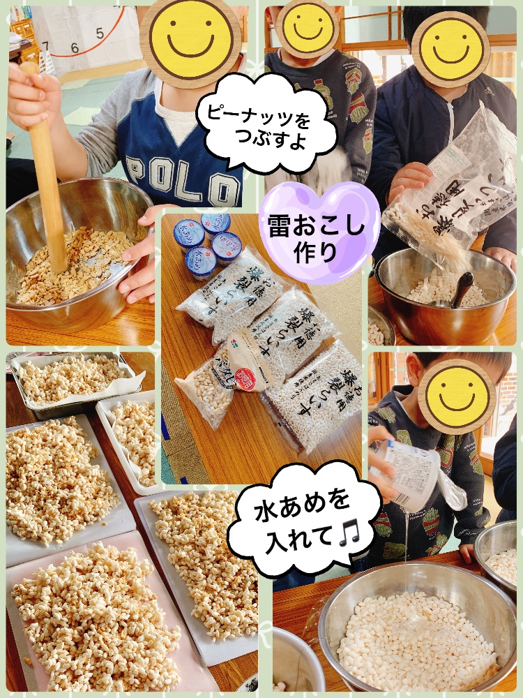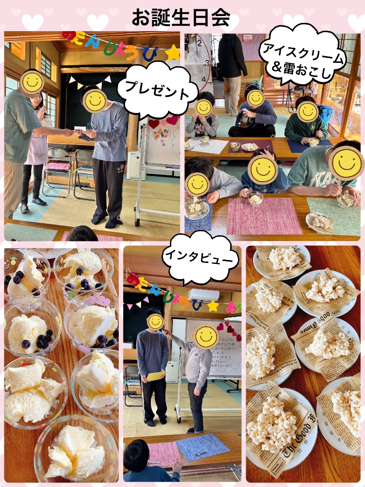 今年度最後のお誕生日会! 暑かったのでおやつにはアイスクリームに昨日作った雷おこし🎵