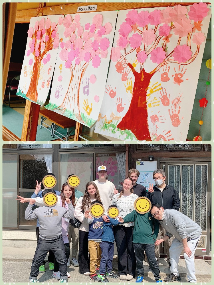 アート活動では、桜の木を描き、折り紙で桜の花を作ったり、手形を押したり春らしい素敵な作品をみんなで創り上げました。