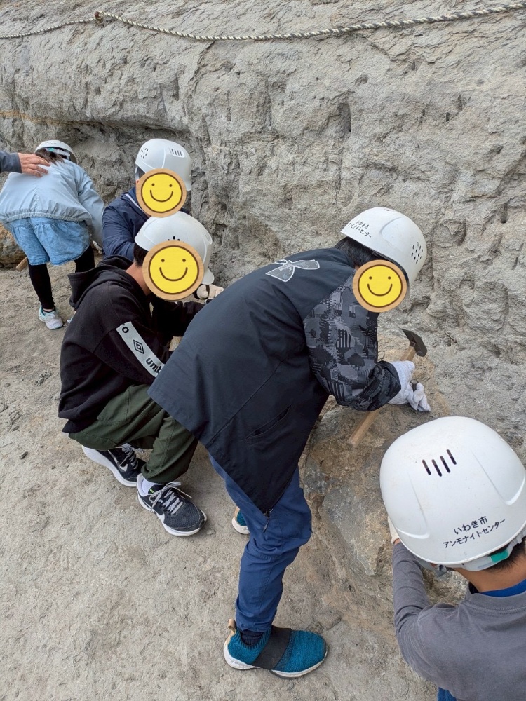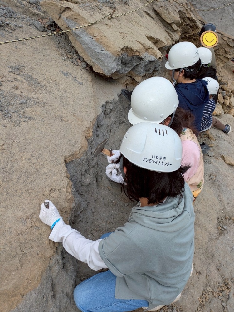 ハンマーやタガネなどの道具を上手に使い、8900万年前の化石を掘り!二枚貝をゲットしたお友だちもおりました♡
