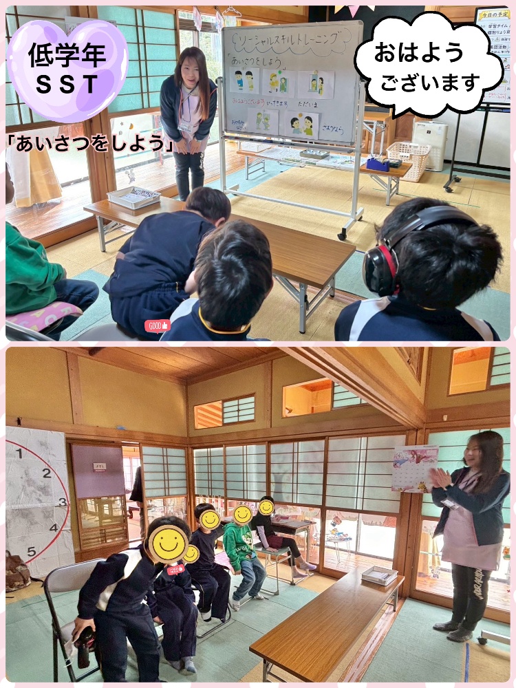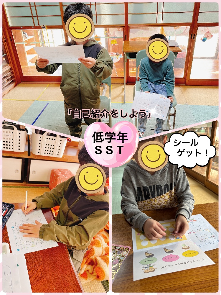 新しいお友だちを加えて低学年のSSTを行いました。第一回目は、自己紹介から♡名前、好きな食べ物、好きな遊びを発表し合いました。