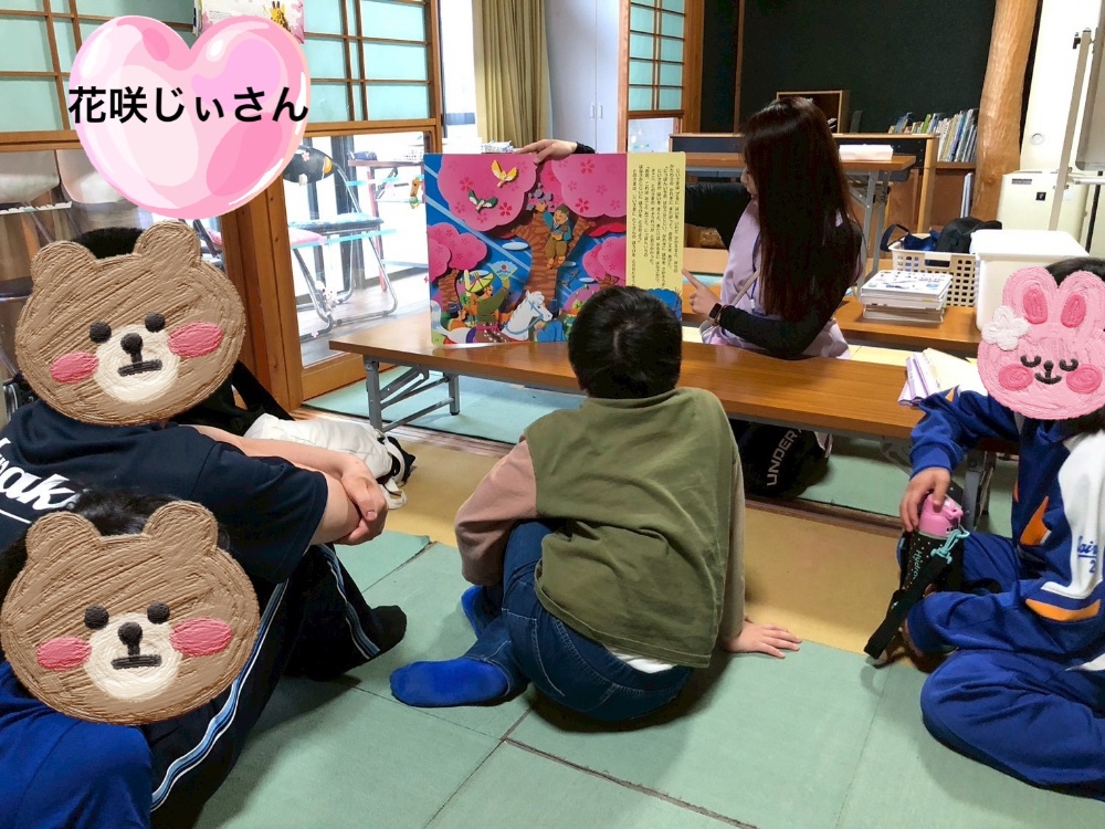 読み聞かせは、江戸時代に生まれたおとぎ話『はなさかじいさん』。日本五大御伽噺のひとつとされています。