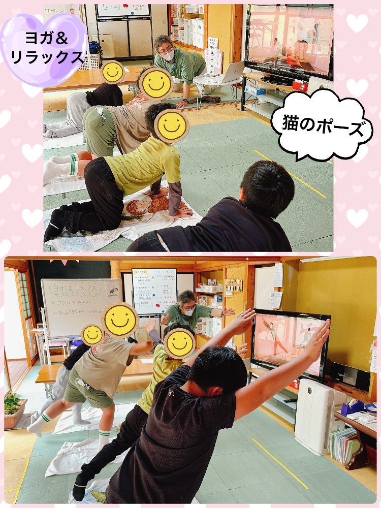 ヨガ&リラックスでは、呼吸や姿勢を意識し集中力アップ🎵