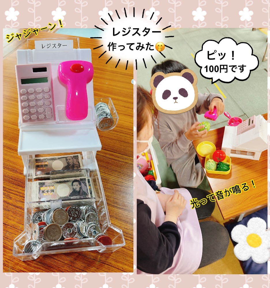 余暇では、お買い物ごっこが人気♡ダイソー商品で、レジスターを作ってみました🤭