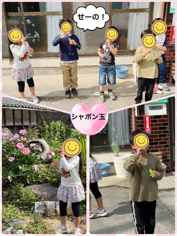 さっそく、シャボン玉を「せ〜の」でみんなで吹きました♡