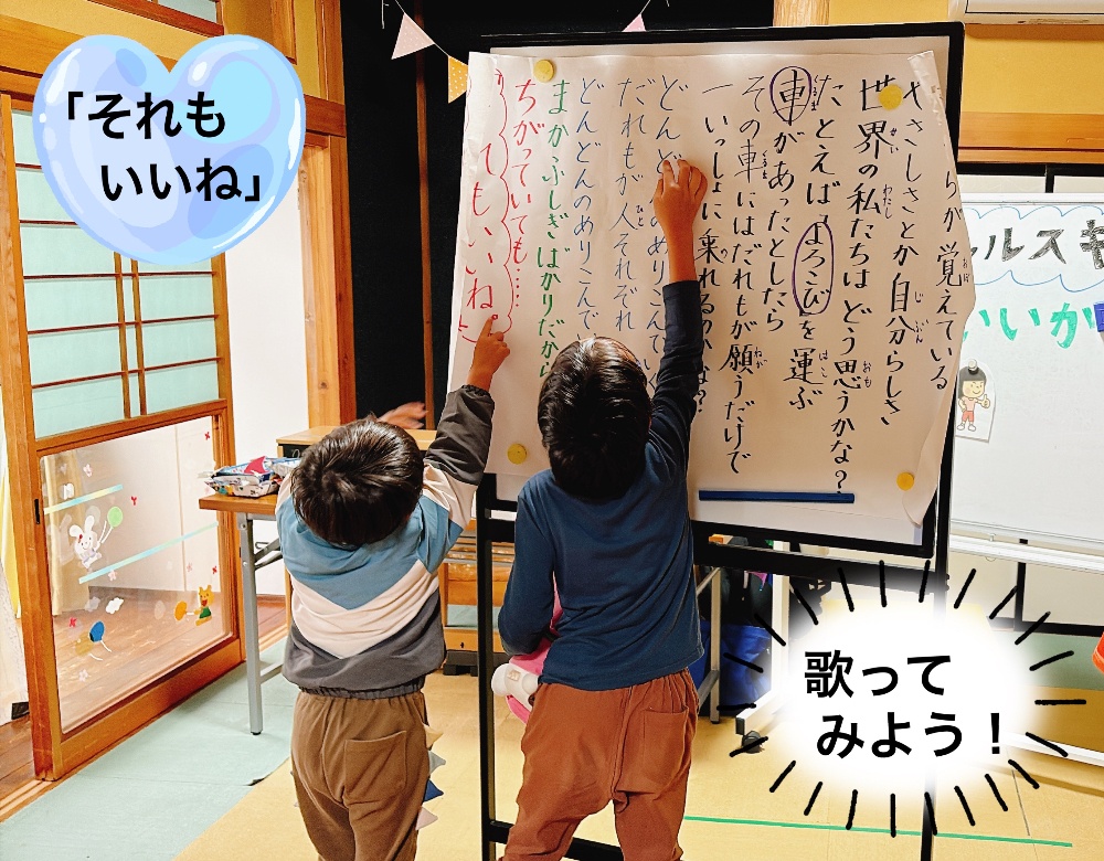 帰りの会では、「それも、いいね」を流し低学年のお友だちは歌詞をなぞっておりました。ちがっていても、それもいいね🎵良い曲です♡