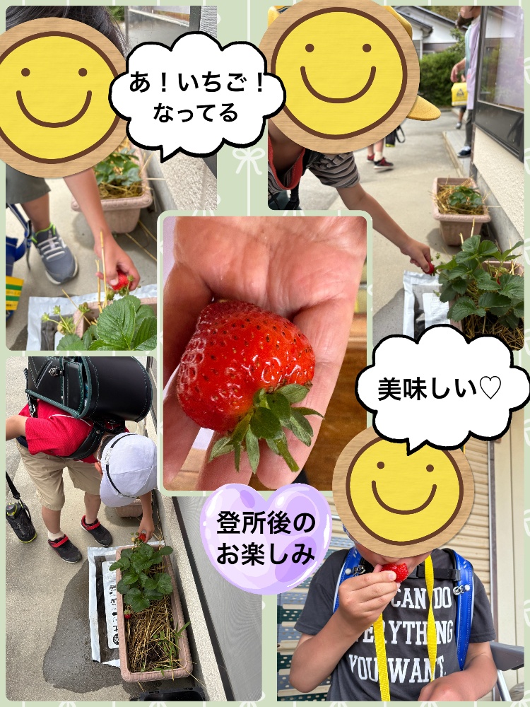 プランターいちご🍓実がなってるのを発見し摘んでいただく。「甘くて美味しい」と食の楽しさを日々感じることのできる素敵な環境に感謝です♡