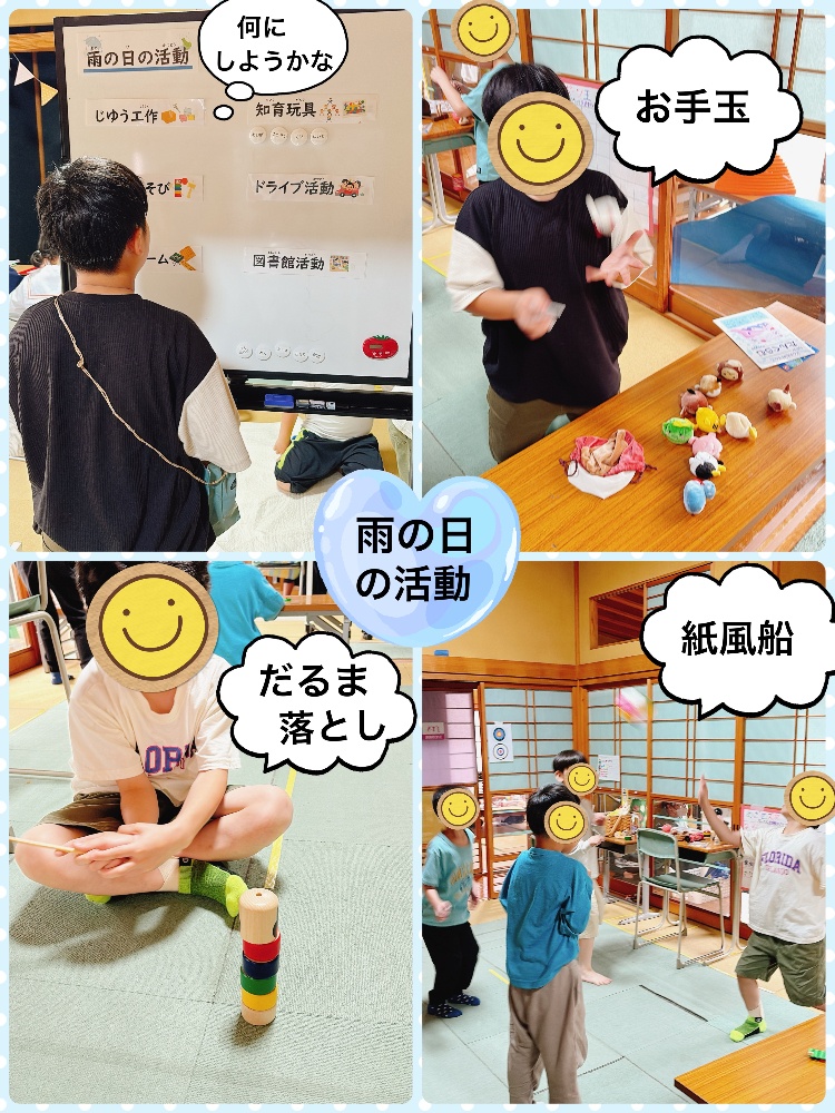 また心までジメジメしないで😅ということで、好きな遊びをする・好きな本を読む・休憩をする・からだを動かそう♡雨が降らないと作物も育たないので貴重な梅雨でもあります。