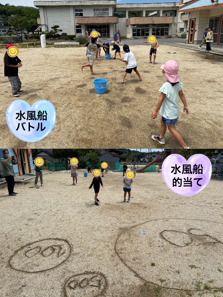 外活動では、水風船バトルを♡どちらがたくさん濡れたかな?!