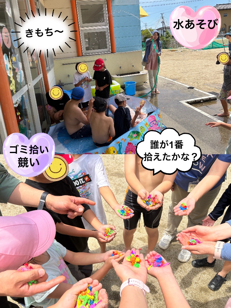 水遊びを楽しみ、距離もだいぶ縮まりました🤭最後に、水風船のゴミ拾い対決!たくさん拾った方にはお菓子のプレゼント♡