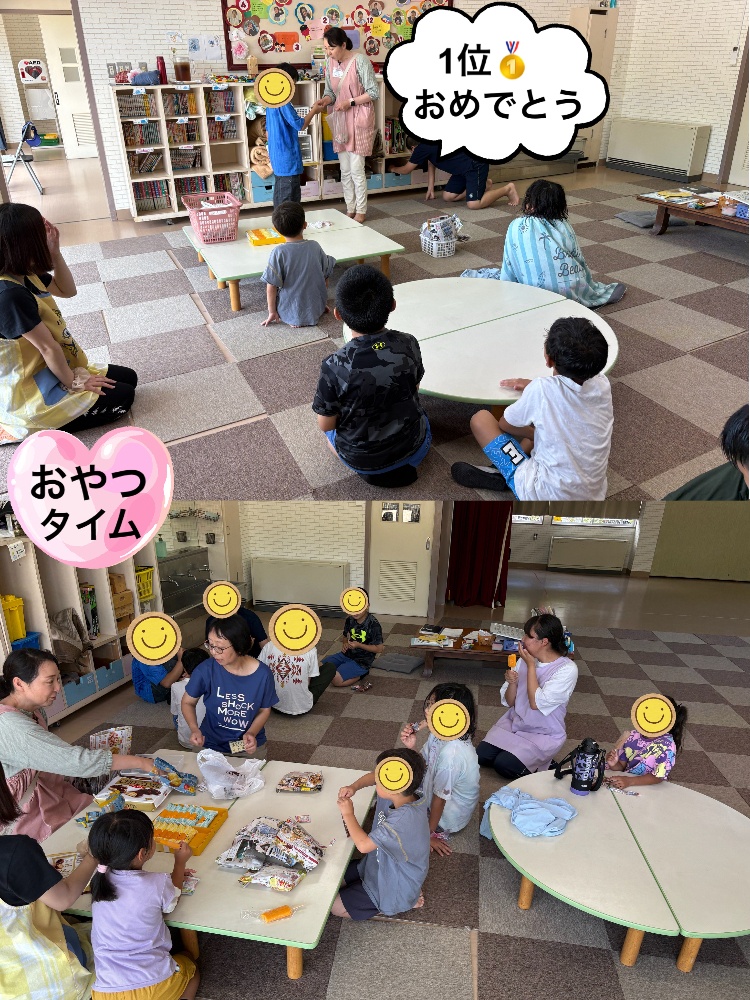 最後にみんなでおやつタイム😊アイスをいただきました♡また、お菓子のお土産まで準備してくださり感謝でいっぱいです♡色々な企画をしていただき、準備等本当にありがとうございました。違う環境でさまざまな子との関わりができ、コーシュリーの子どもたち、職員にとってもとても貴重な体験となりました。