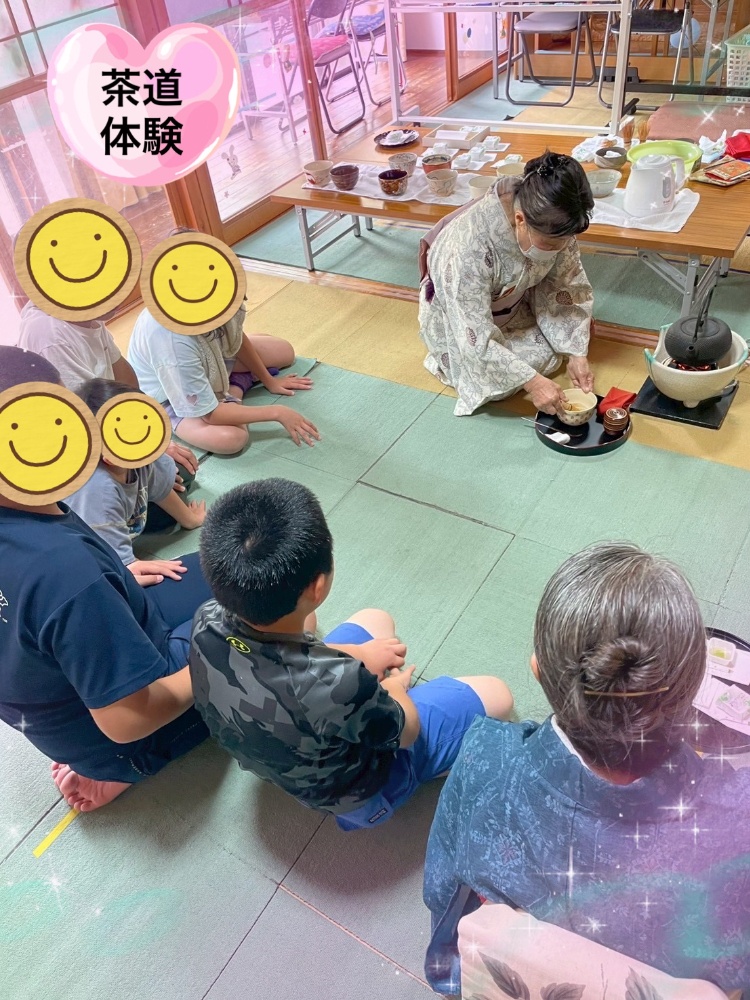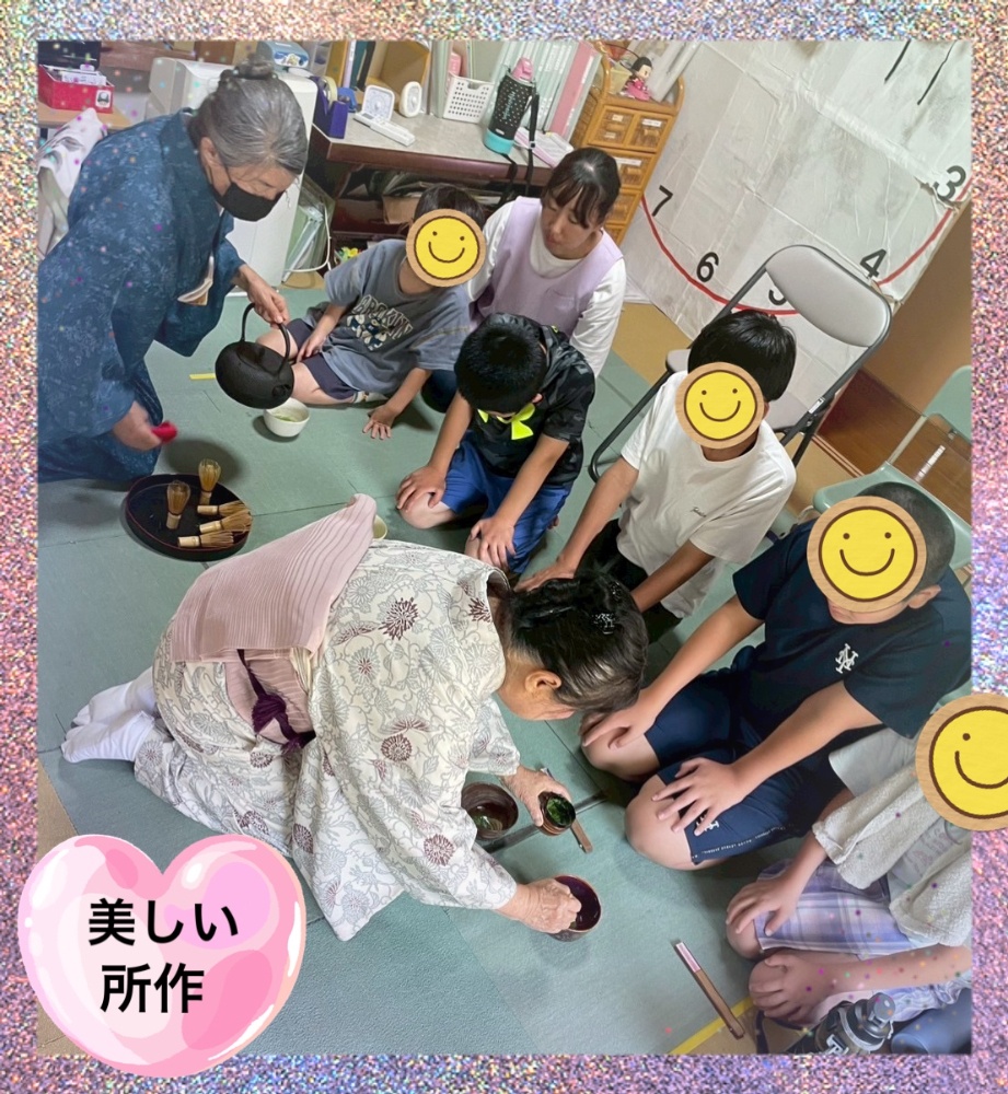 午後からは、講師の先生をお招きし「茶道体験」礼儀作法、思いやりの心、感謝の気持ちを育み、日本文化に触れることを通じて豊かな人間性を培います。