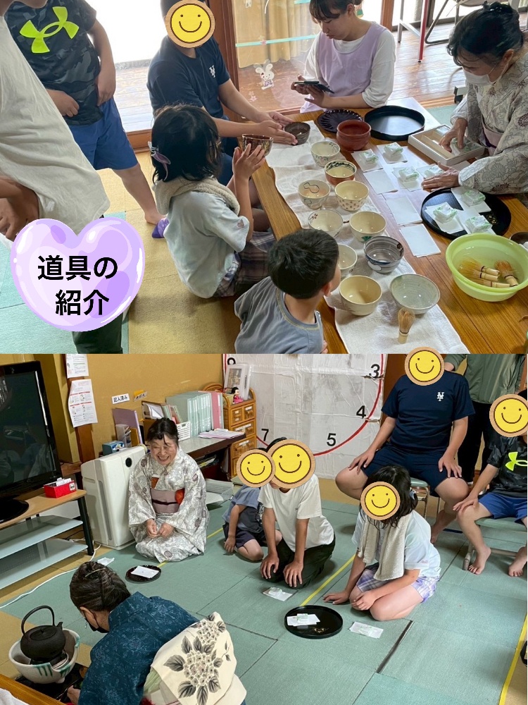 さまざまな道具を見せていただきました。正座でお作法を学ぶ子どもたち♡