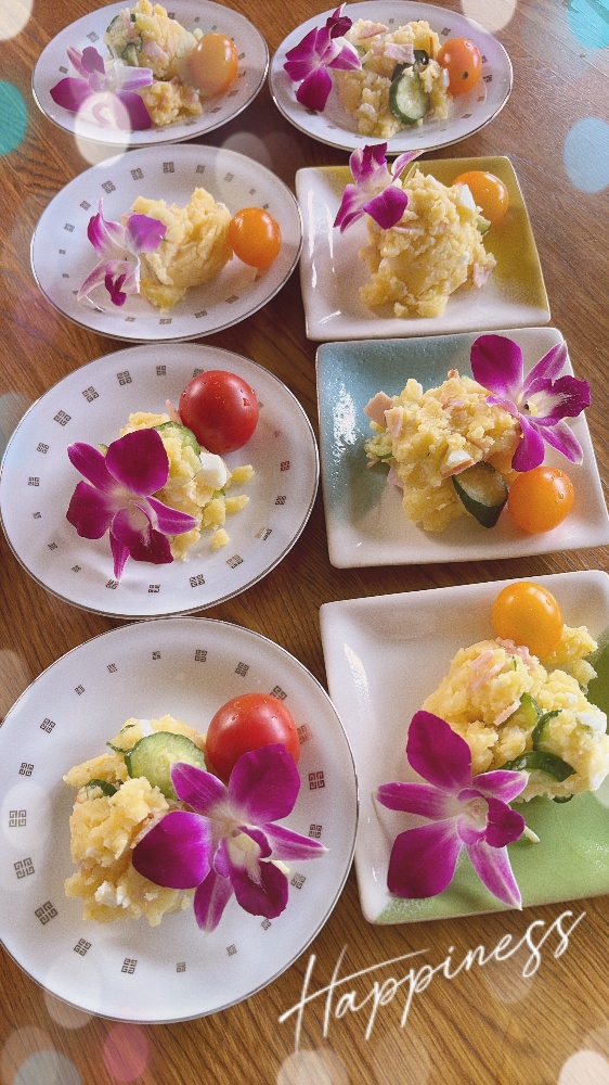いつもと雰囲気の違う華やかなポテトサラダの完成です。