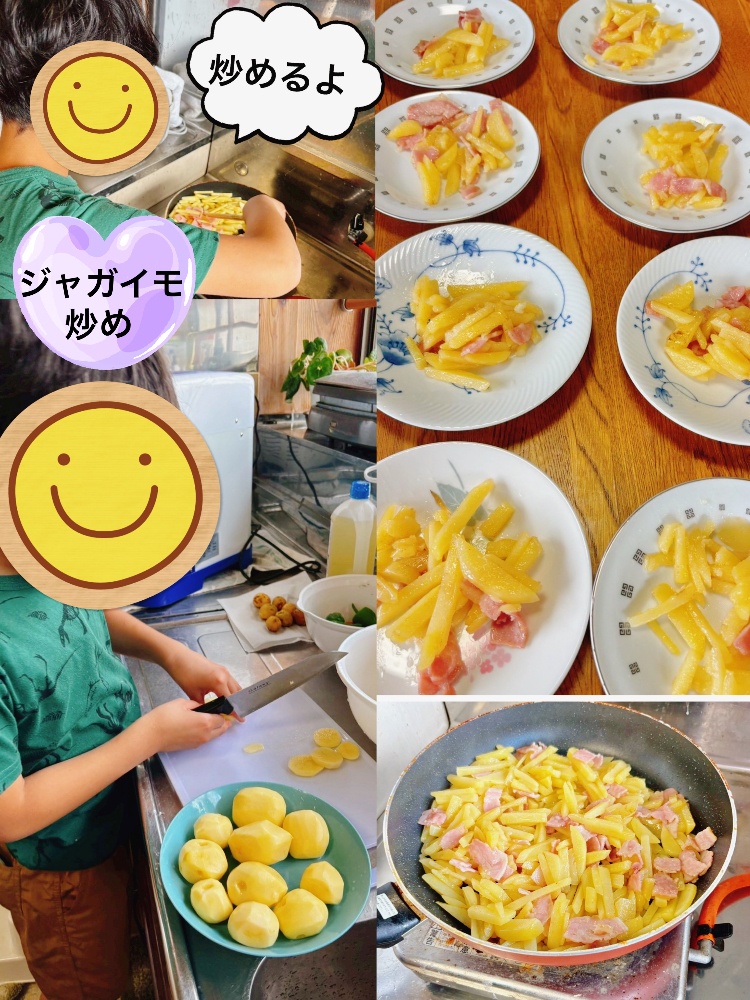 ジャガイモとベーコン炒め🎵皮をむき、包丁で切る!手先の巧緻性アップ!4年生が大活躍♡