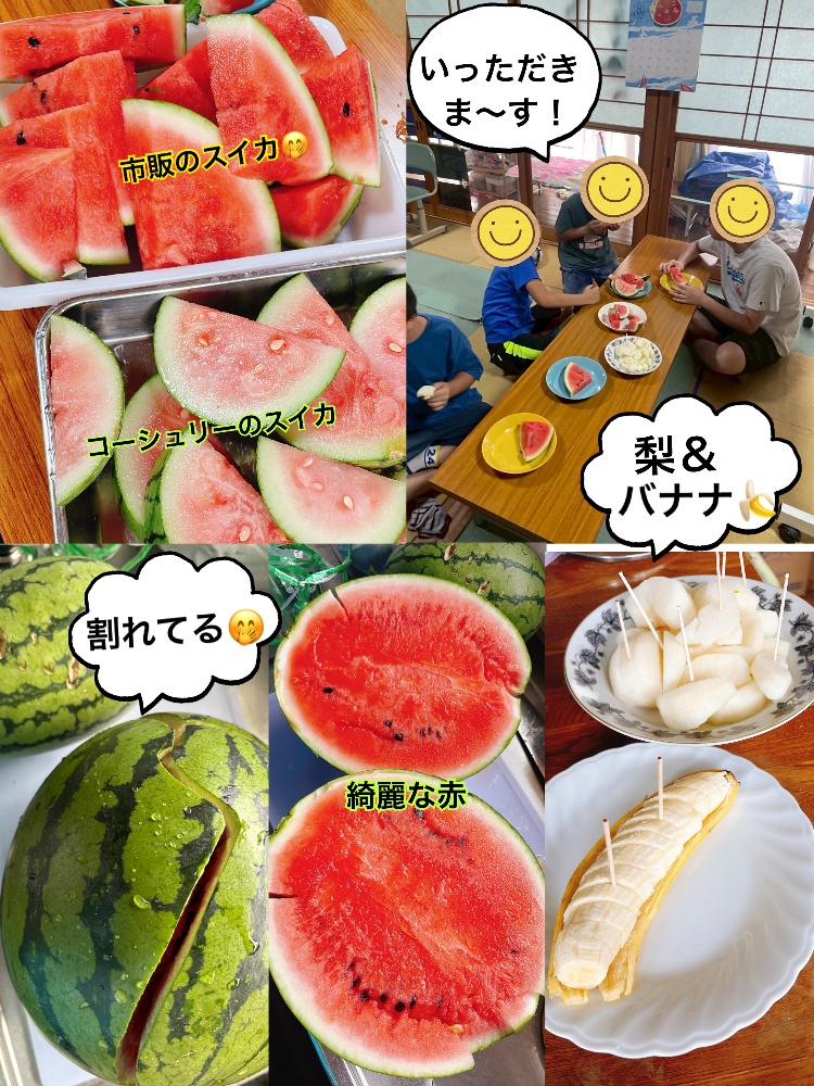 スイカが苦手な子にはバナナと梨を♡みんなで食を楽しみました。