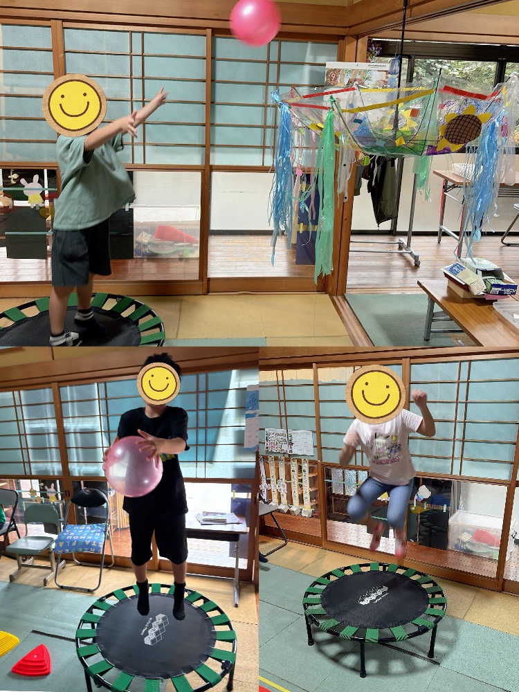 トランポリンでは、体幹を鍛え姿勢保持につなげます。