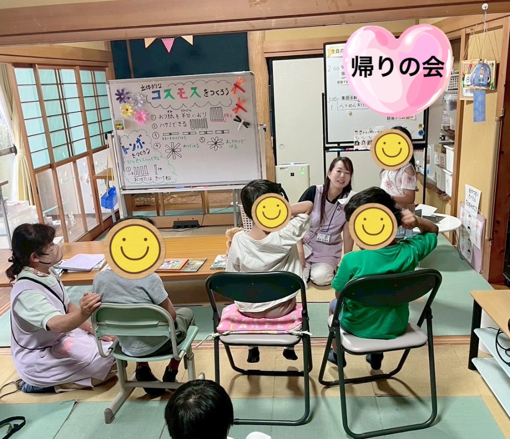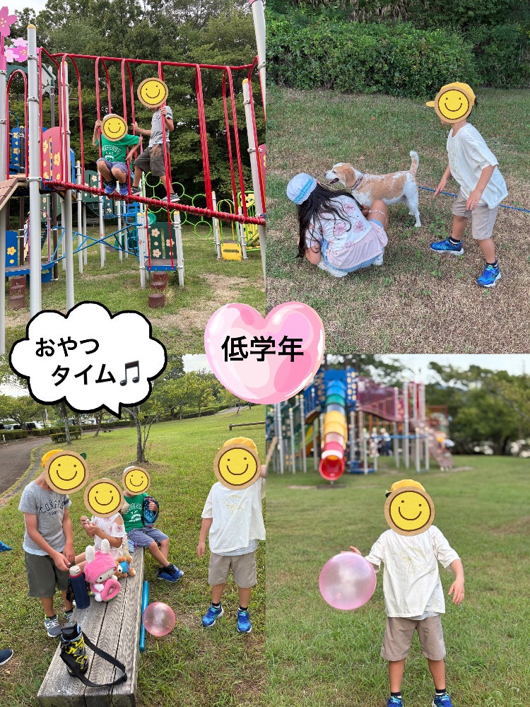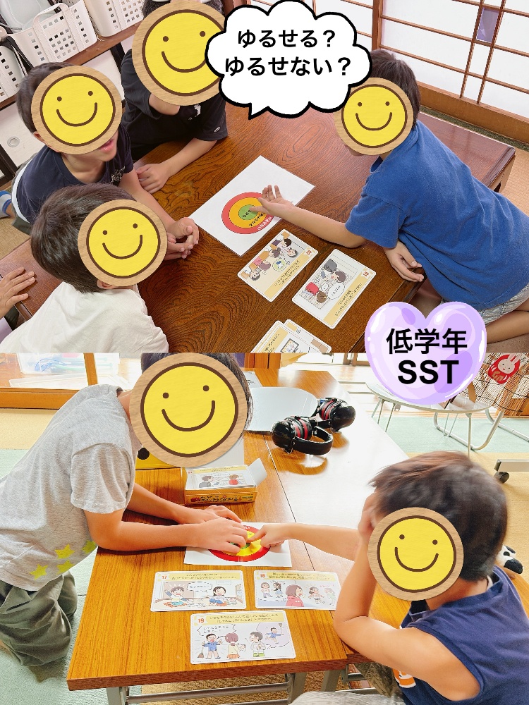 小集団活動では、低学年のお友だちで、夏休みの思い出を発表し合いました。言語・コミュニケーションを高めるために簡単な事柄から、無理強いをせず、ゆったりとした話しやすい環境づくりを心がけております♡