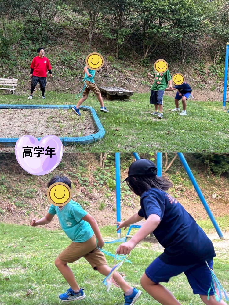 高学年は、ルール理解をねらいにしっぽ取りゲームをし発散いたしました。