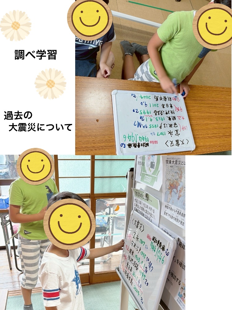 身近にある震災。。。興味がある子が多く、過去の大震災について調べてみました。年代とマグニチュードを書き出し、2011年の東日本大震災が国内観測史上最大であることが分かりました。