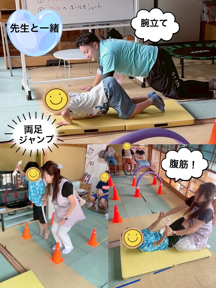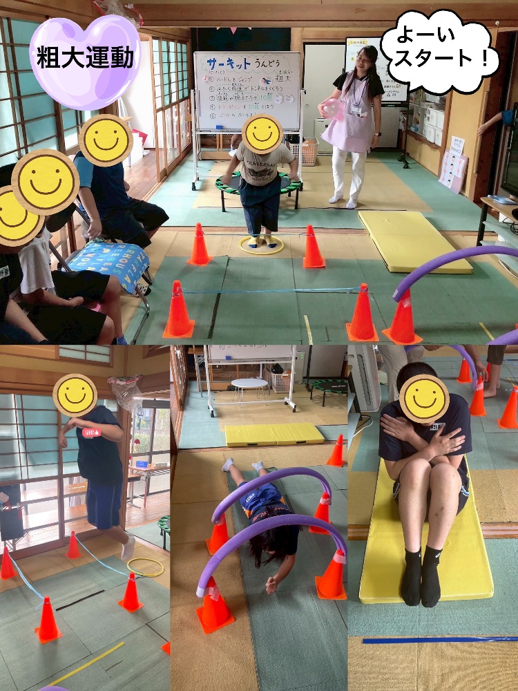 粗大運動では、からだ全体を使って行う大きな動きのことで、日常生活の土台となる身体の動きを指します。さまざまなミッションにトライ☝️