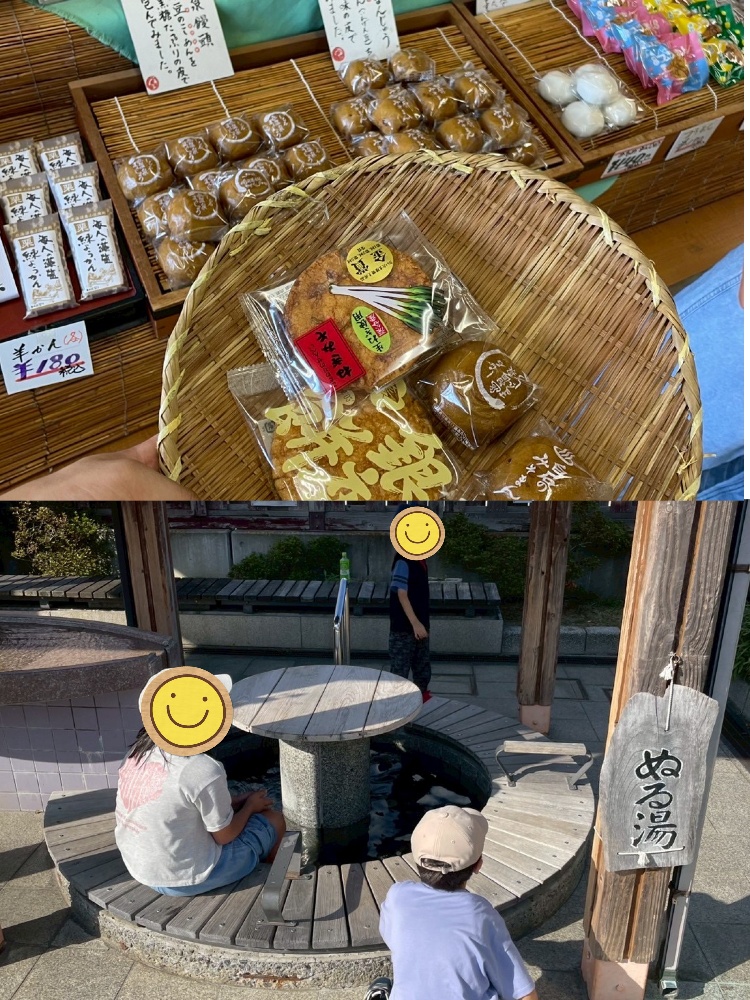 和菓子を購入し、足湯につかり日頃の疲れを癒しました♡