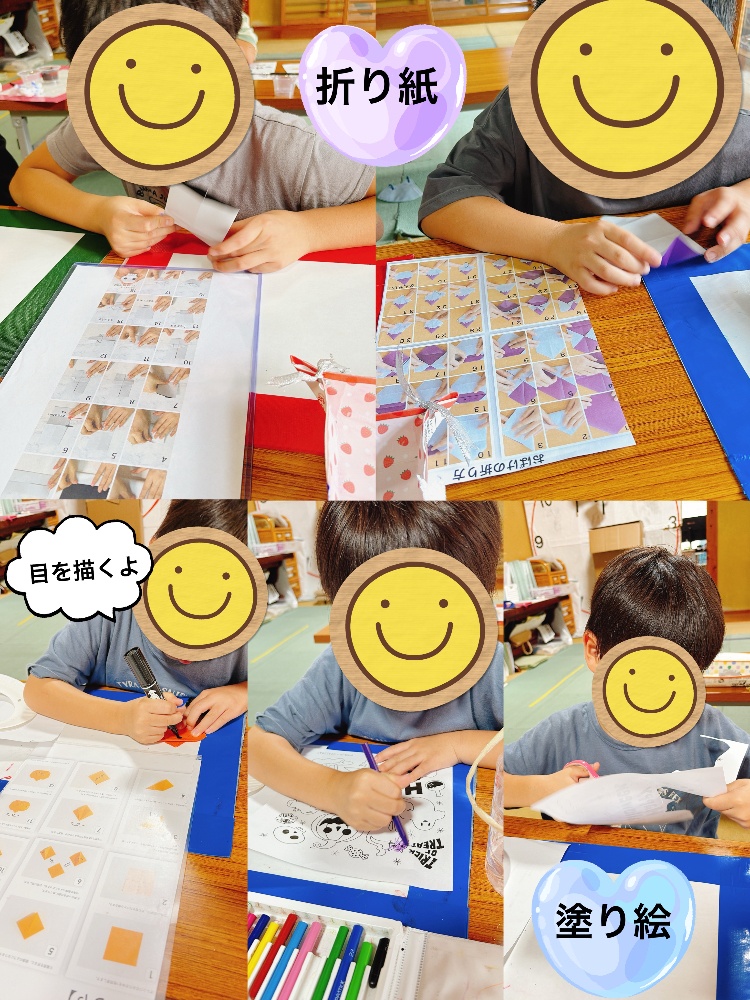 次に手先の巧緻性を鍛える、また手順書を読み解く力、わからないところを聞く力👂をねらいとし毎回制作活動をしております😊また、その子に合わせ塗り絵も準備♡塗り絵をし使いたいパーツをはさみで切る✂️